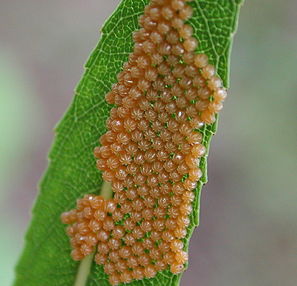 Mourning Cloak ovipositing on Black Willow (Salix nigra) May 26, 2000
