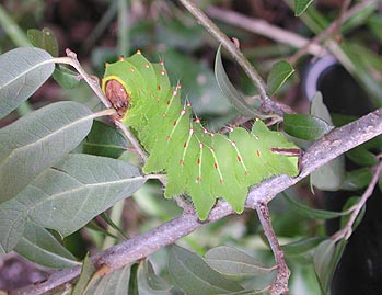Polyphemus moth larva feeding on Live Oak.